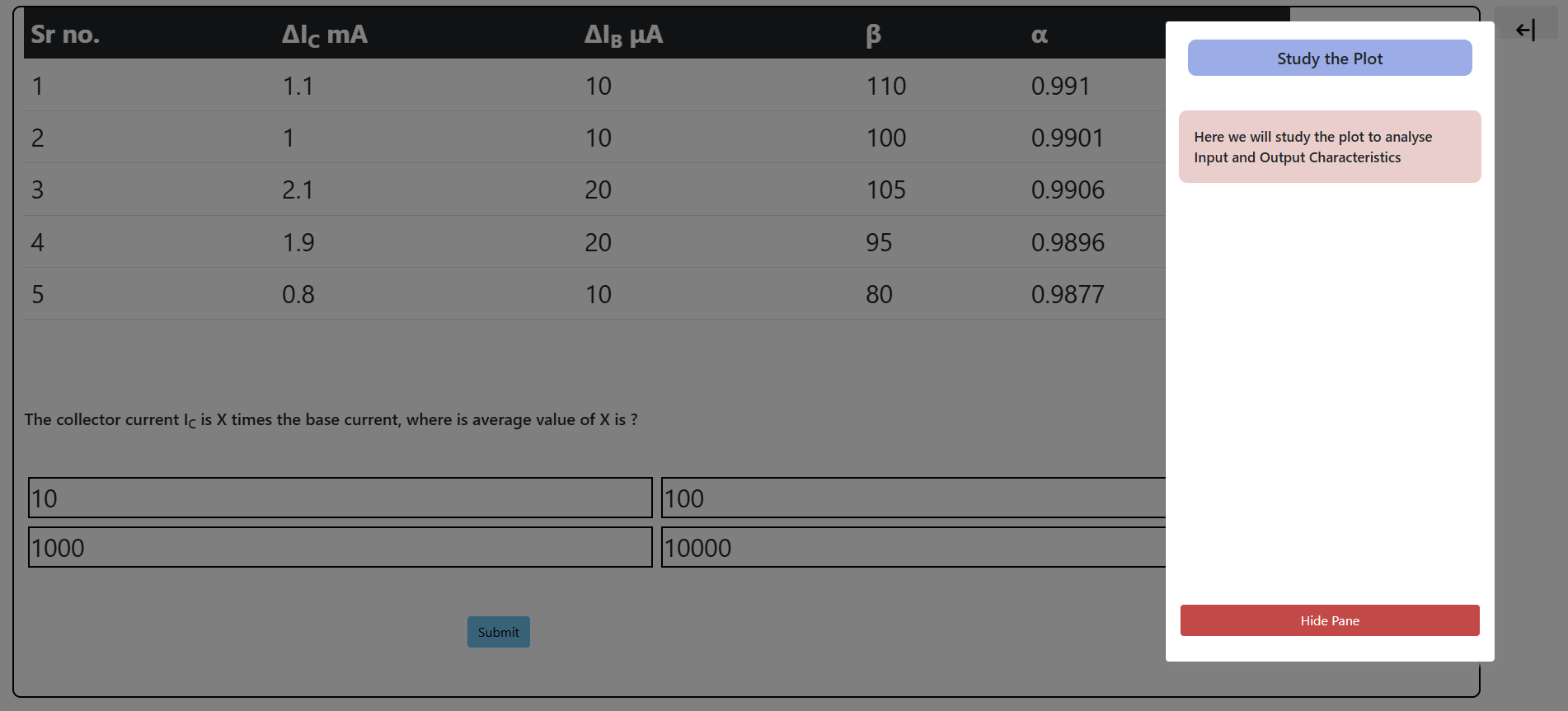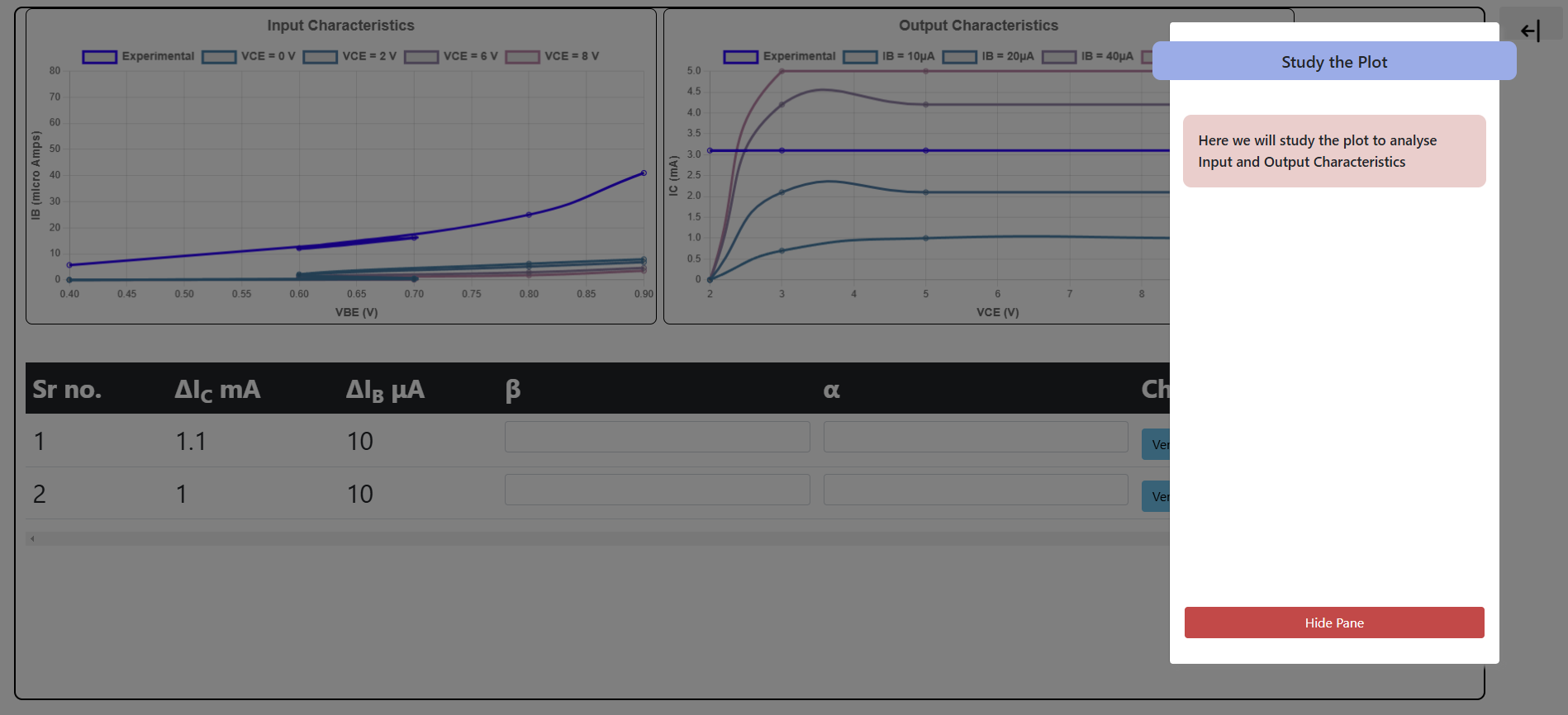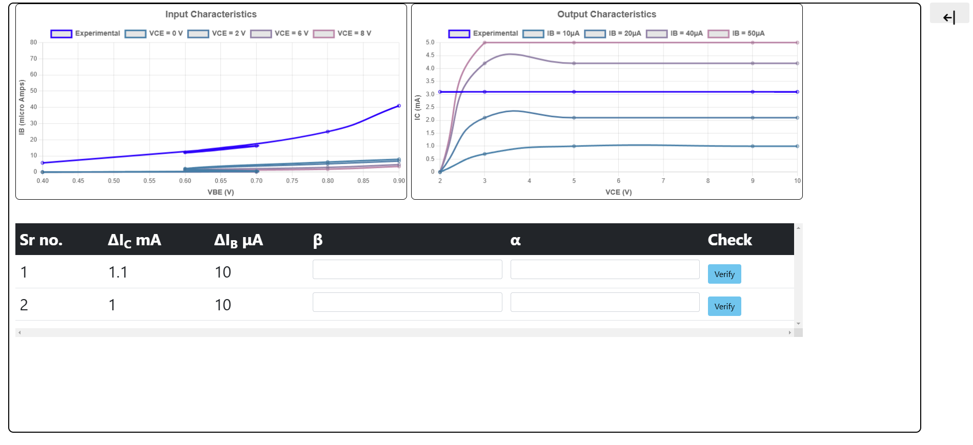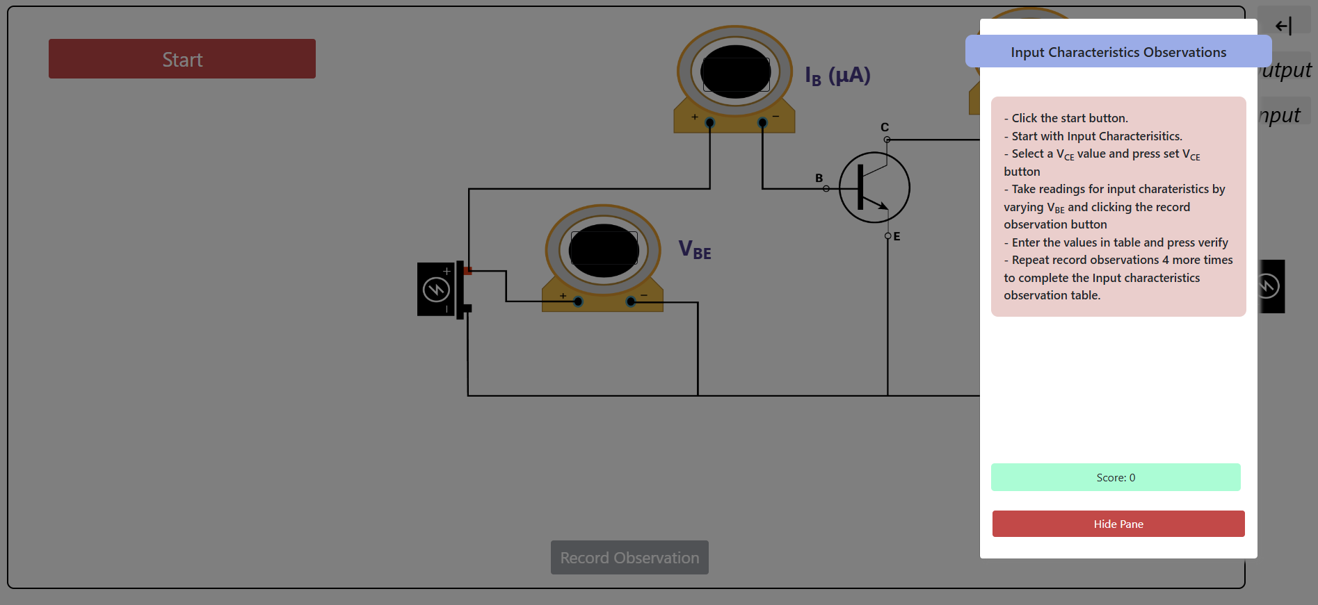 - Set the voltage VCE = 2 V and vary IB with the help of VBB and measure VBE.