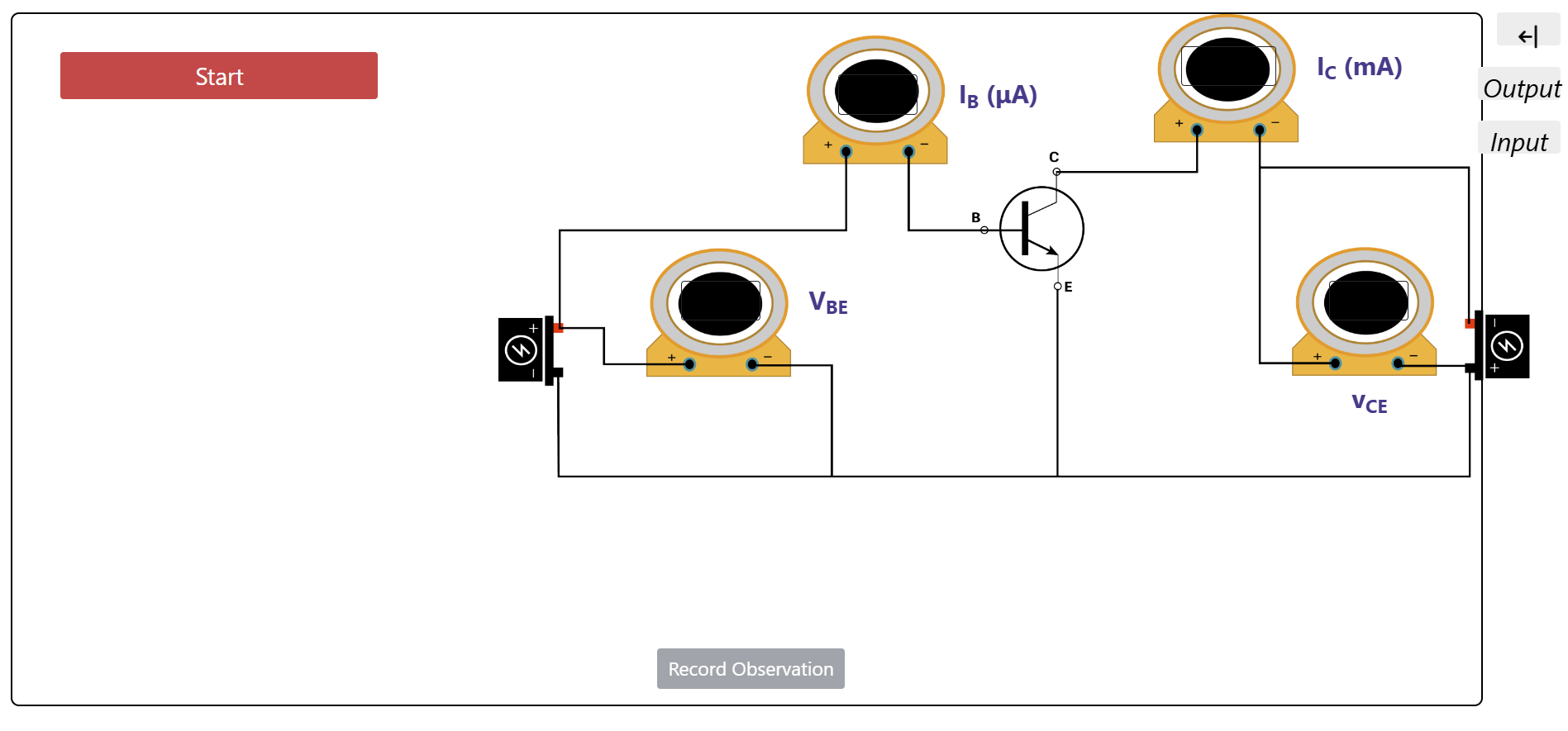 - Set the voltage VCE = 3 V and vary IB with the help of VBB and measure VBE.