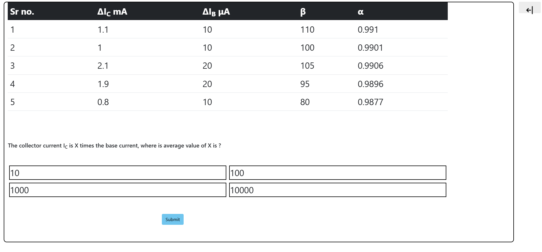 - Now keep IB = 20 μA, vary VCE and note down the collector current IC.