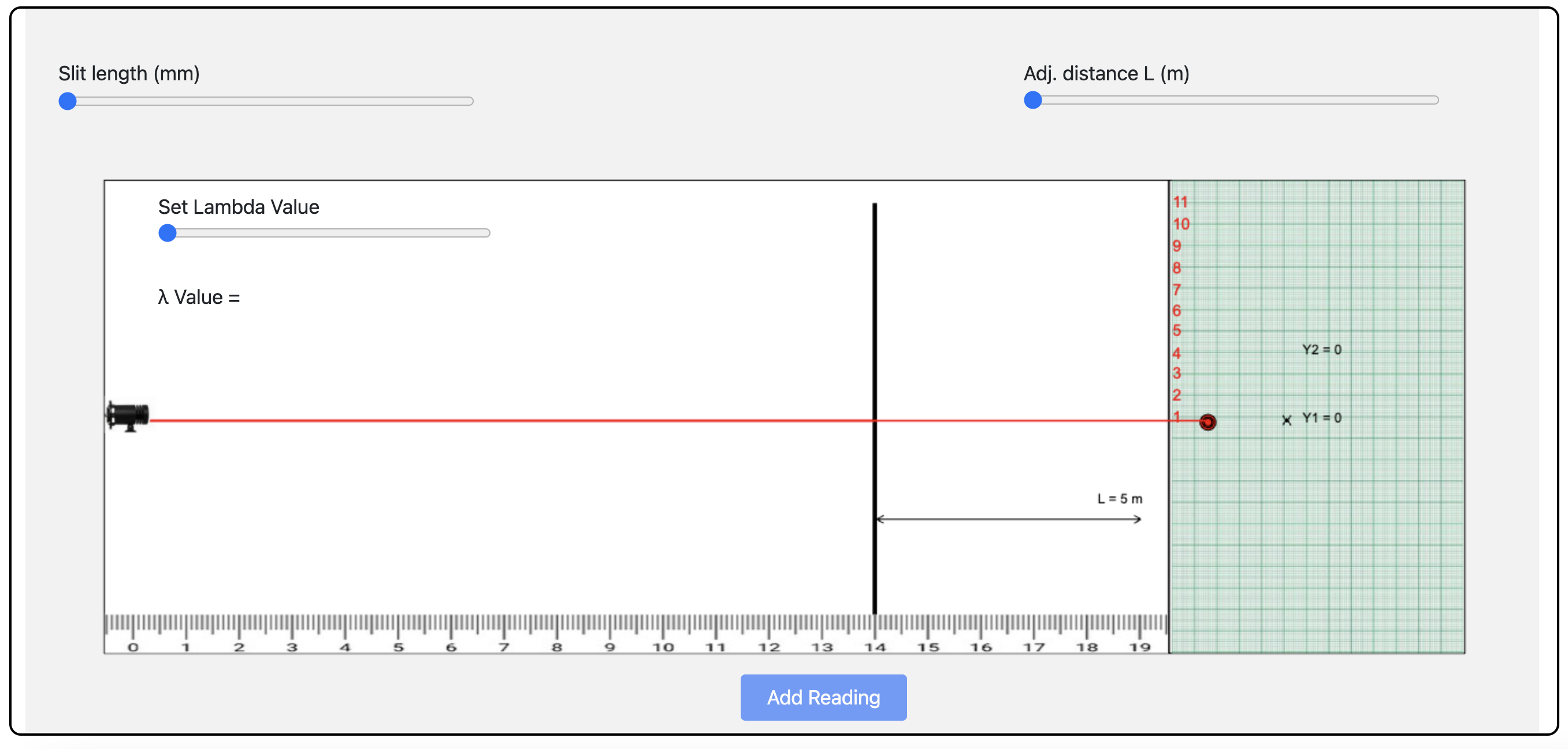 Move the sliders and observe the changes with respect to d, distance between slit and screen and wavelength.